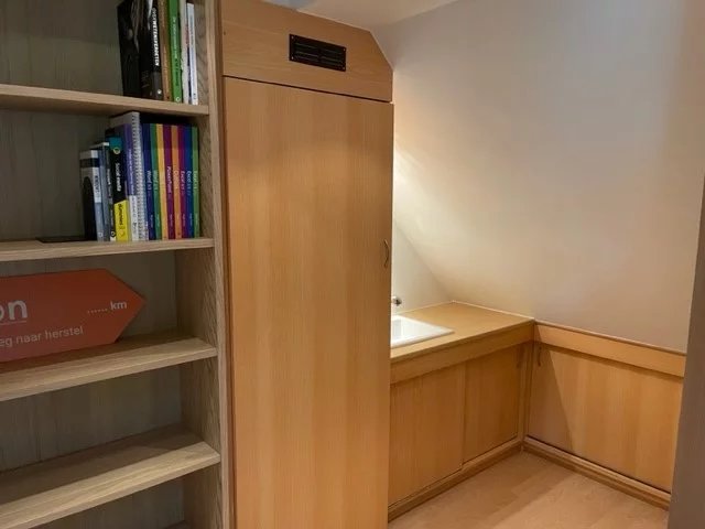 Op de bovenverdieping is 1 ruime slaapkamer met ingemaakte kasten en een aansluitend zolderkamertje met kasten en lavabo. Hier hangt ook de boiler die in 2018 nog werd vervangen.