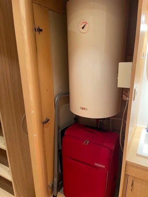 De verwarming is momenteel elektrisch maar kan heel simpel vervangen worden door een lucht- warmtepomp.