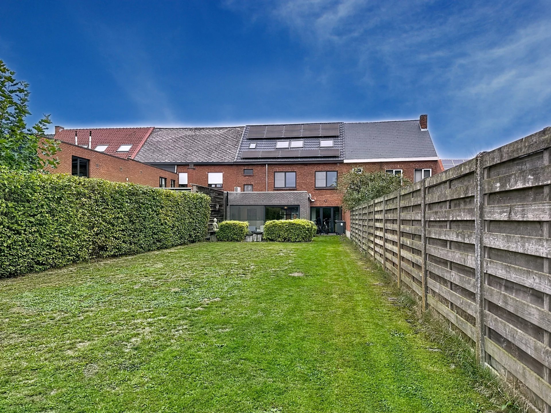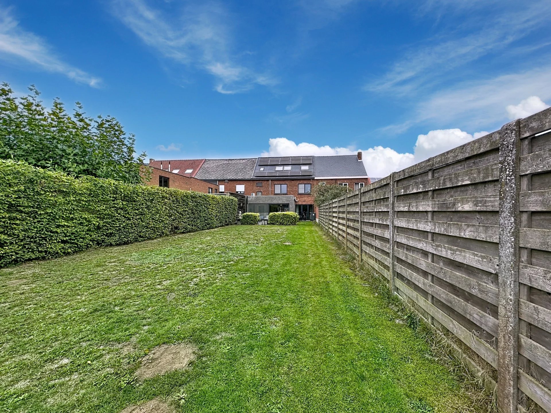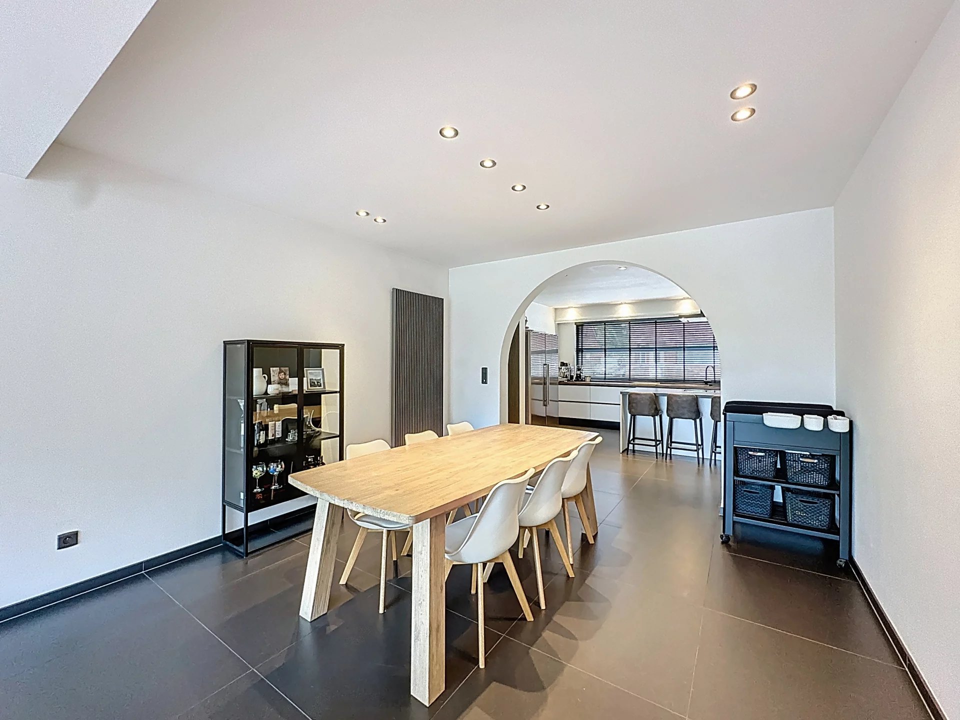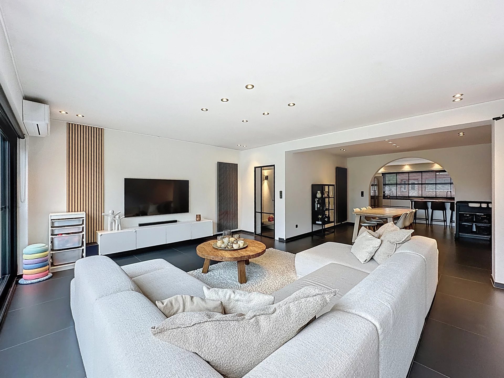 Het eet- en leefgedeelte is een lange open ruimte waarbij je door het grote schuifraam zicht hebt op de prachtige tuin.