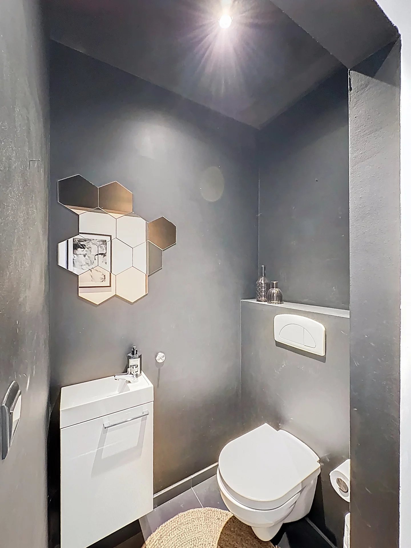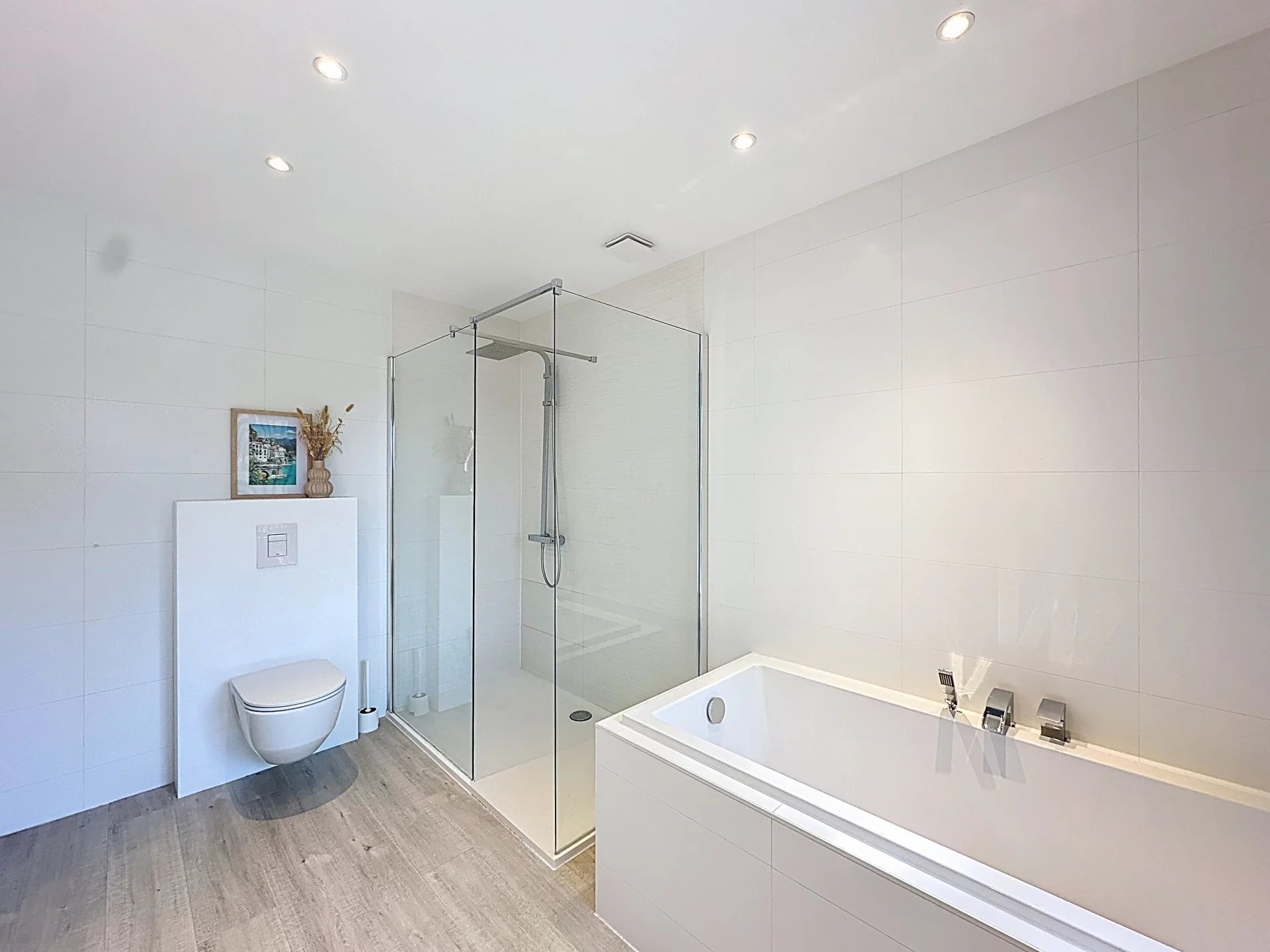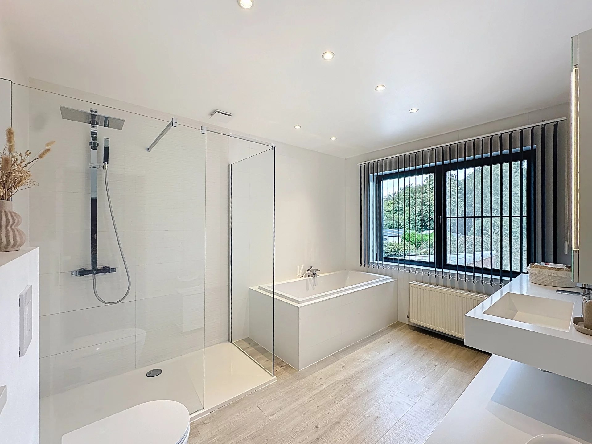Deze is voorzien van bad, douche, dubbel wasmeubel en toilet.
