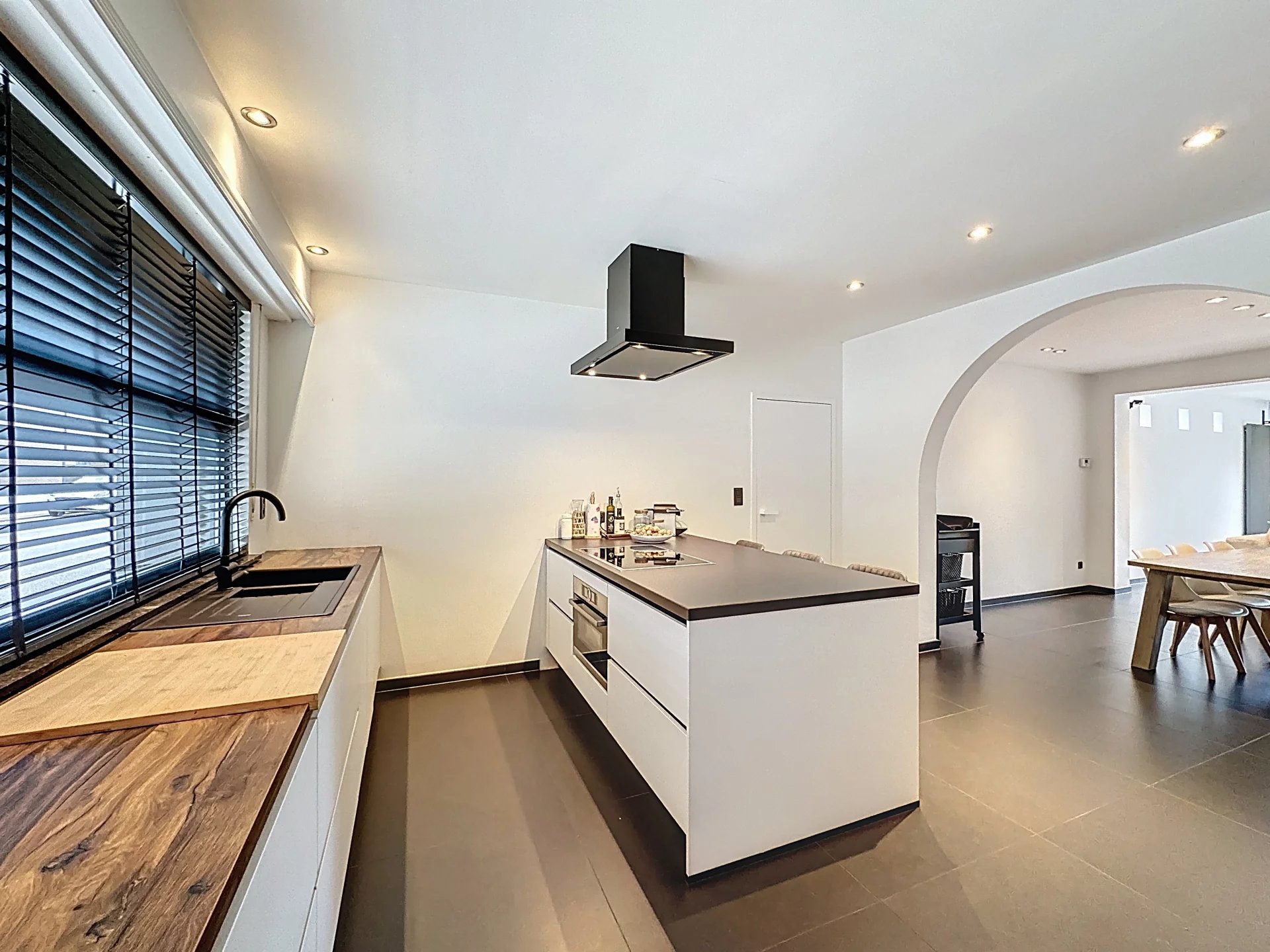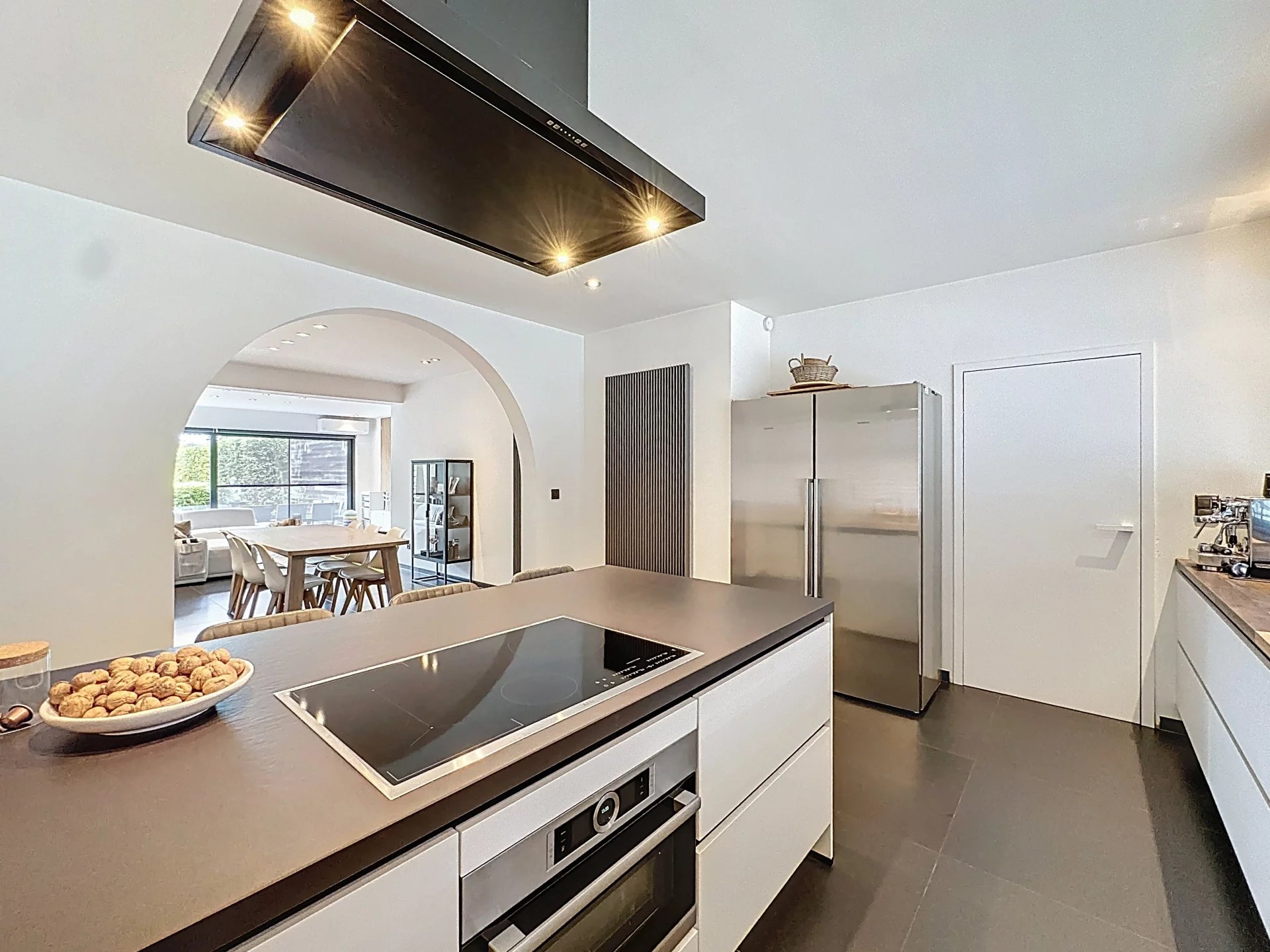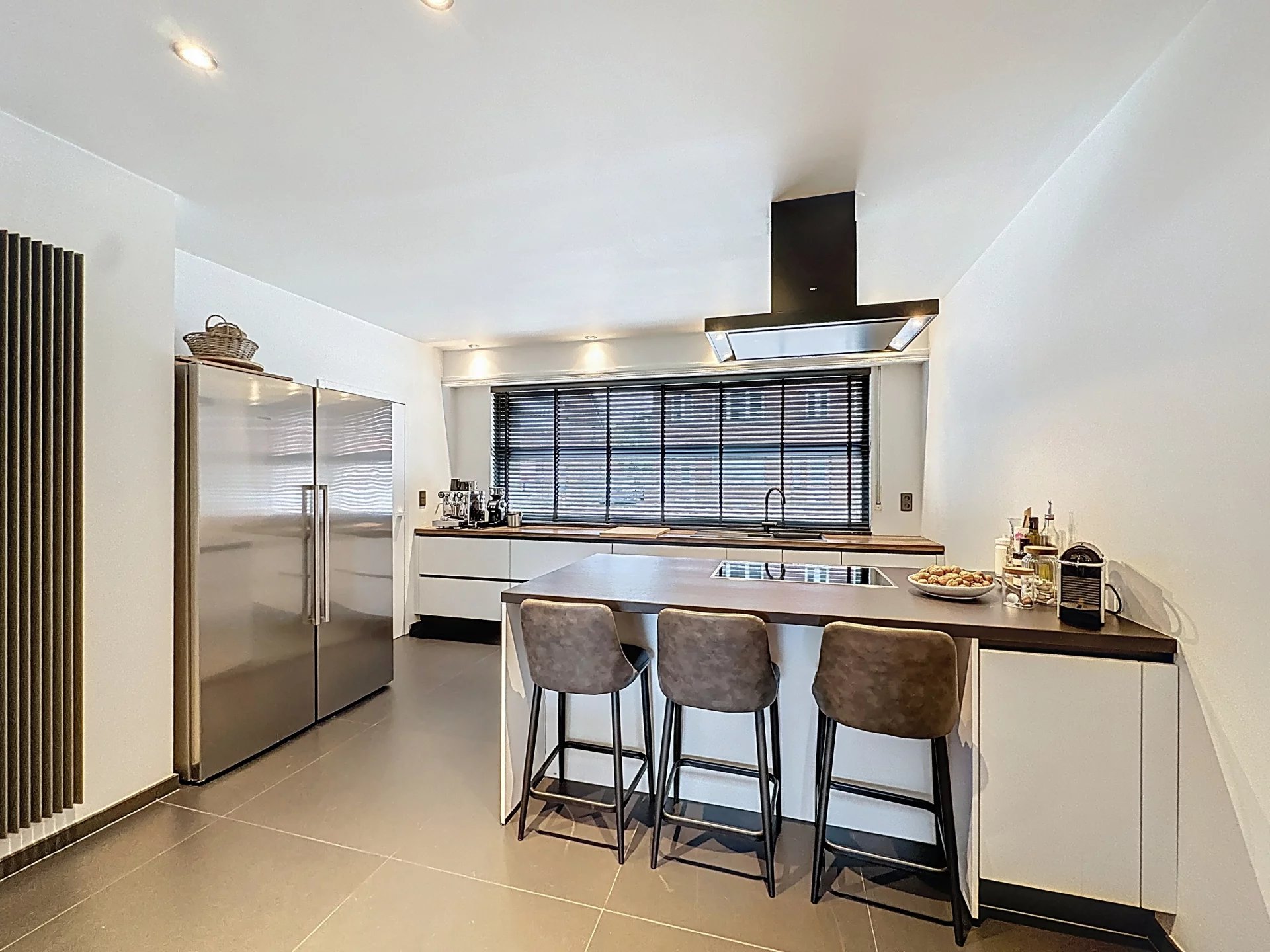 Deze is zeer modern ingericht een voorzien van al het nodige comfort zoals combi-oven, inductie kookplaat en Amerikaanse ijskast met grote diepvriezer.