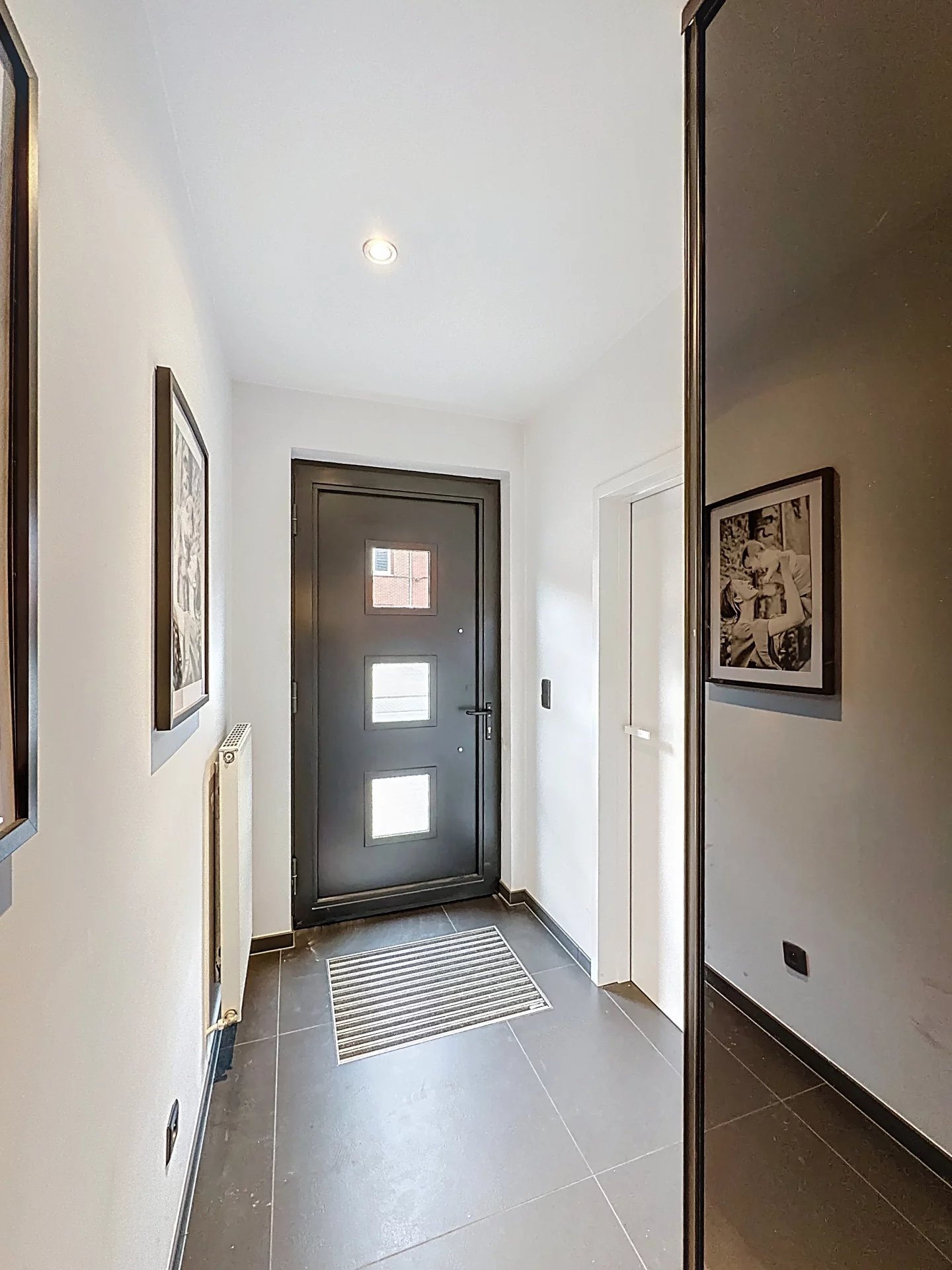 De inkomhal is voorzien van een gastentoilet, een handige opbergruimte en biedt toegang tot de kelder, het woongedeelte en de keuken.