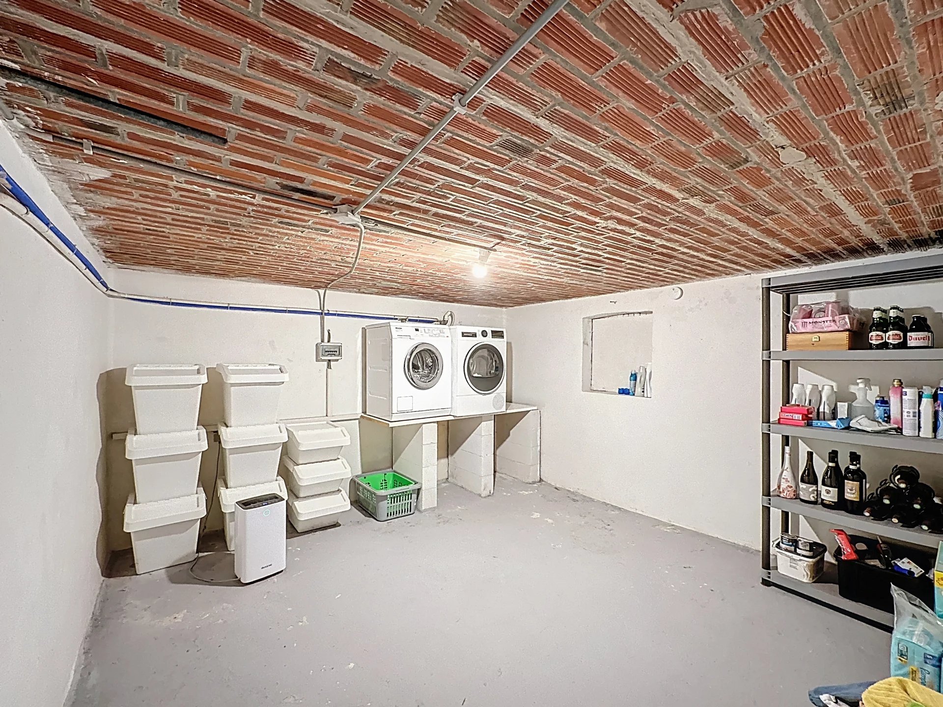 De kelder biedt voldoende opbergruimte en dient tevens als wasruimte.