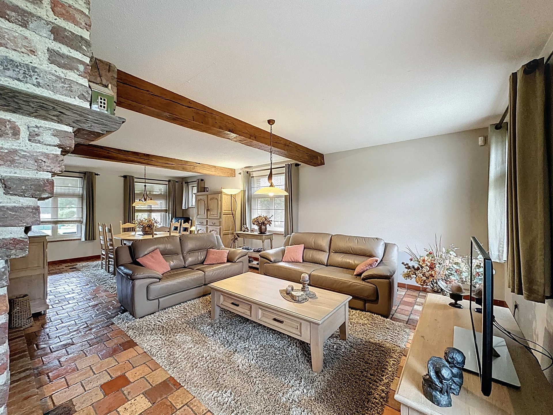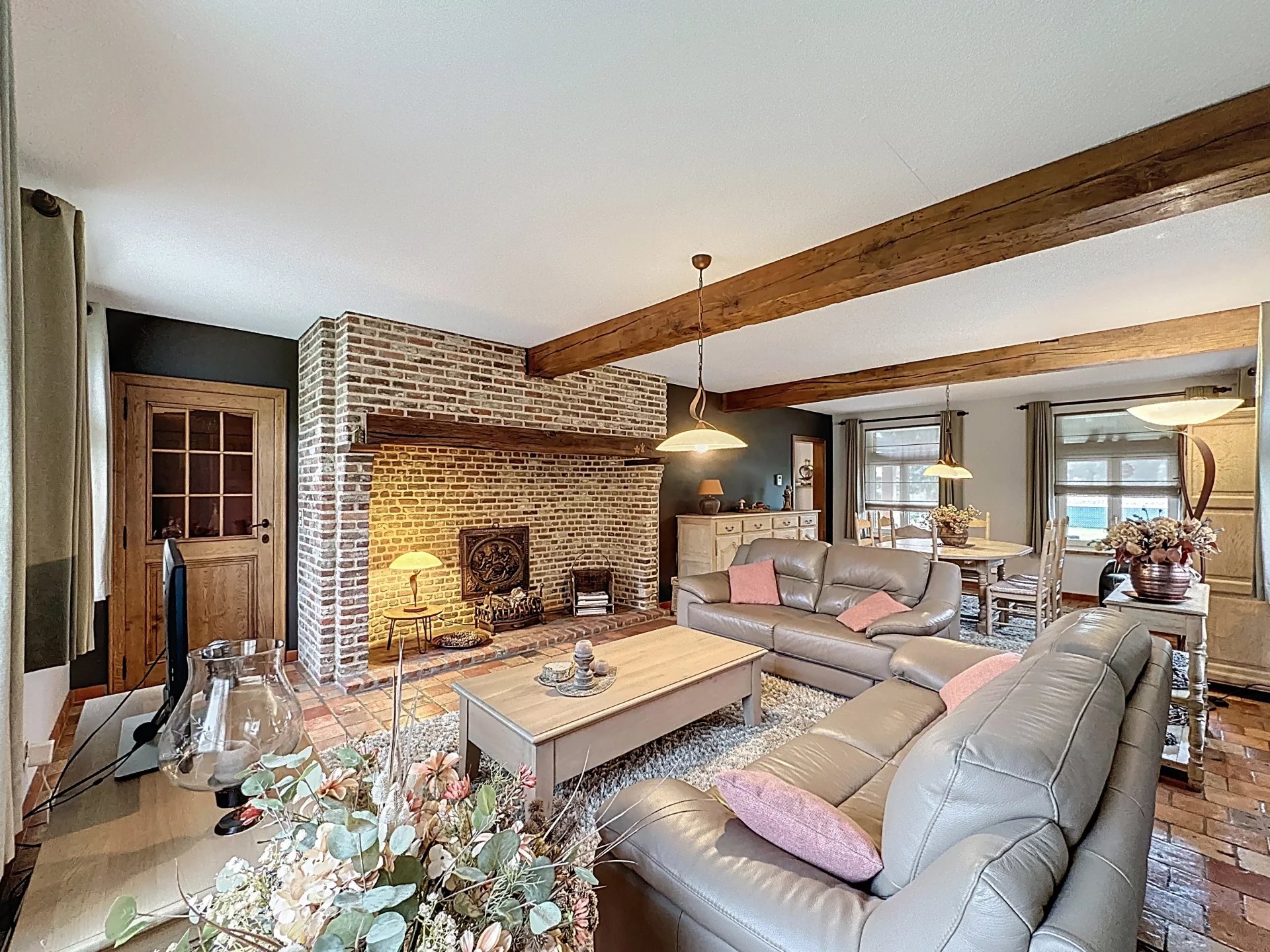 De stenen vloer, de grote open haard en de houten balken stralen karakter en warmte uit.
