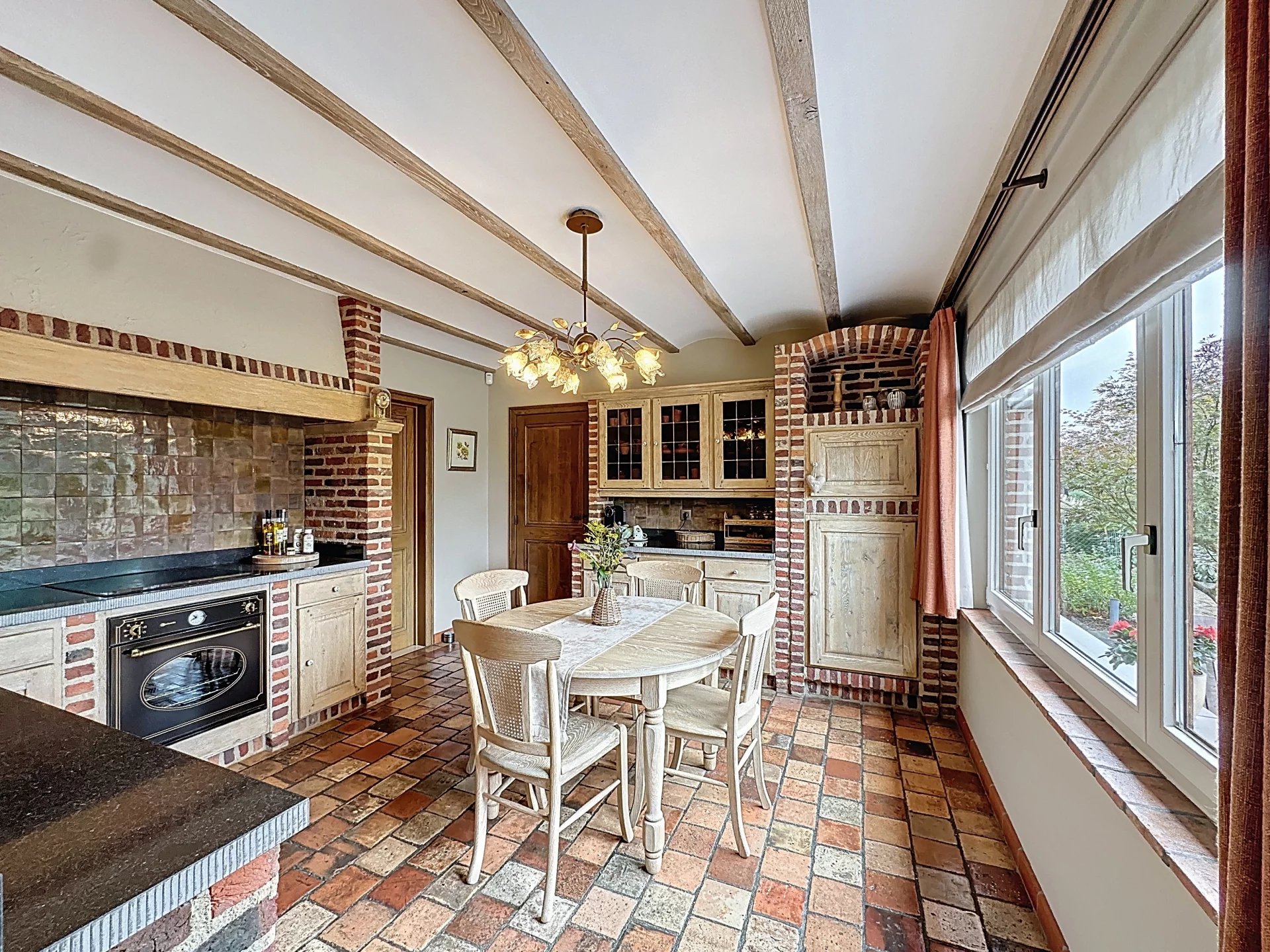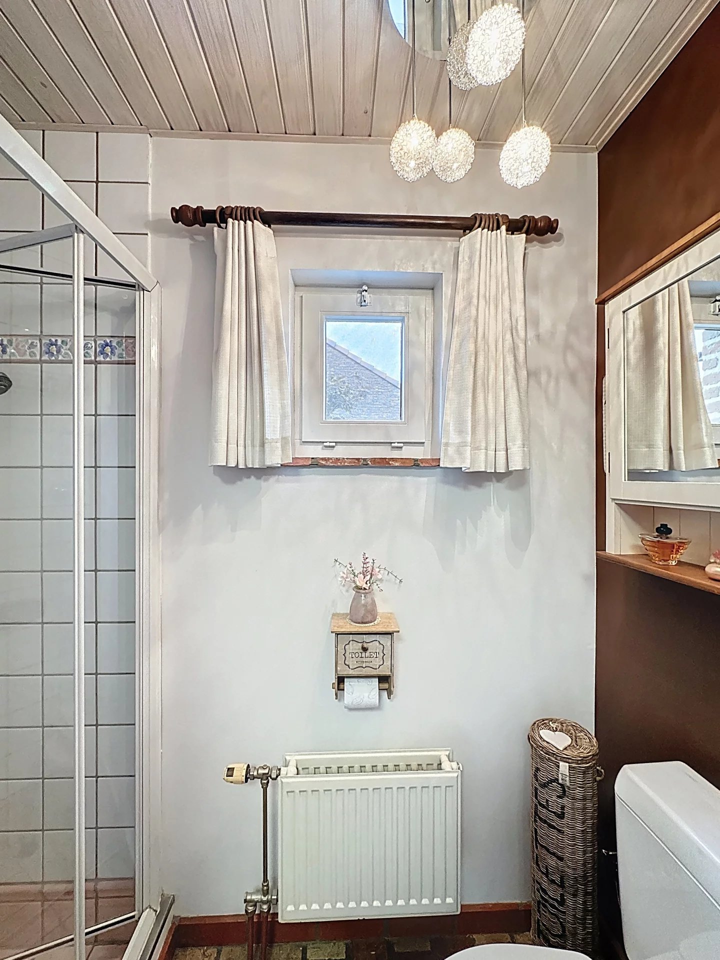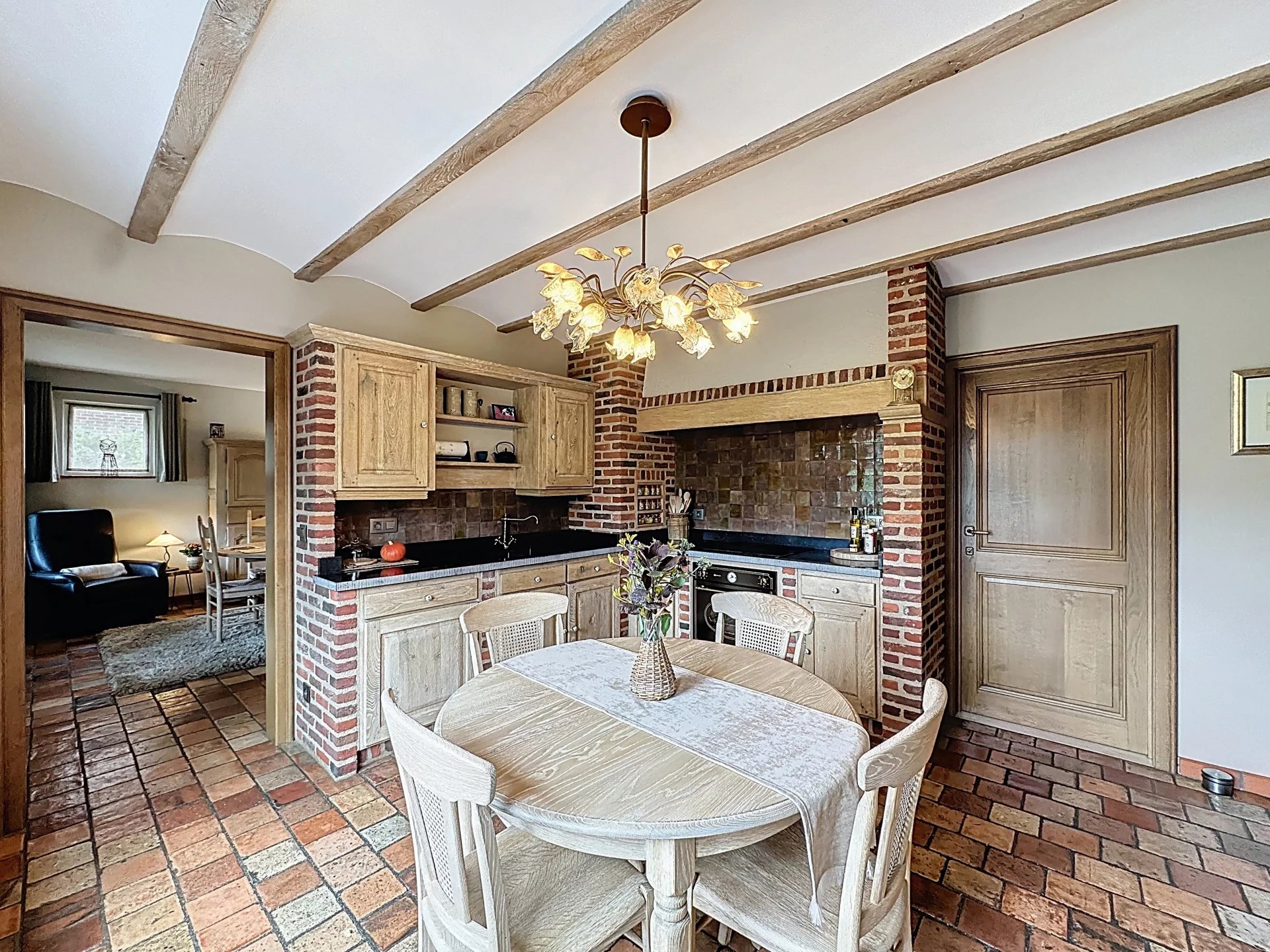 De keuken werd in 2016 nog vernieuwd. Een strak composiet werkblad, mooie bruine zeliges als spatwand en de eiken kasten maken van deze keuken een zeer gezellige ruimte.